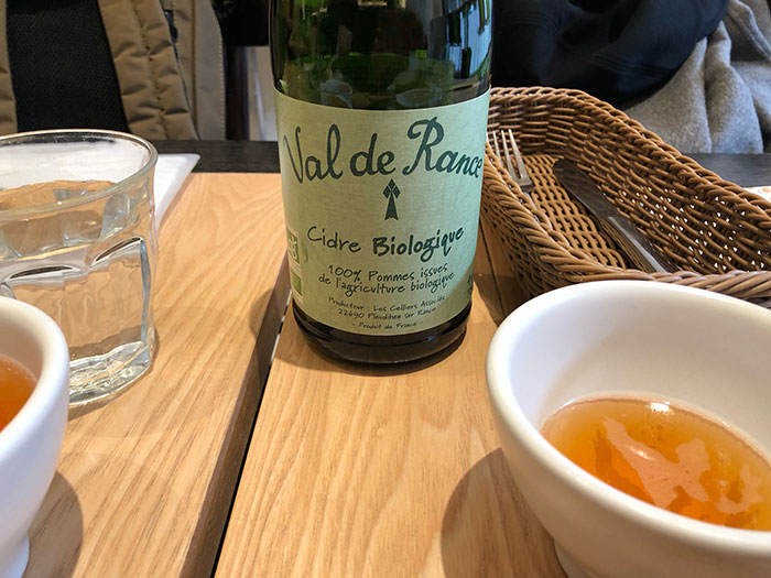 そして、今回もオーガニックのシードルを1本オーダー。フランスで飲んでいたものと同じボトル。アルコール度数は4度なのですが、アルコールに弱い私はこれだけで目の当たりがぽわんと赤くなります。